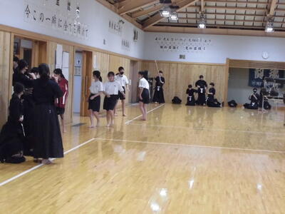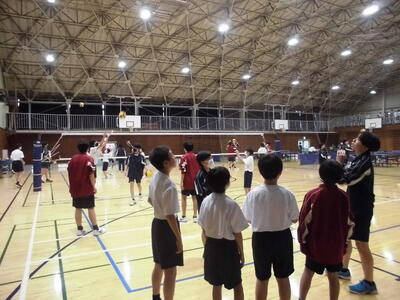 体育館ではバレー部(男子)が多くの一年生が参加しており、上級生から丁寧に指導していました。