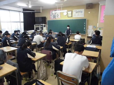 今日の学級活動は、生徒総会に向けて生徒総会議案書についてそれぞれが意見をもって参加する学級討議の時間でした。今年は、これまで議案書は紙で印刷されていましたが、今年度は各自がクロムブックよりデータを確認する方法が初めて取られました。学級の雰囲気はそれぞれでしたが、2、3年生には昨年の学校朝会で話した「参画」を思い出してほしいと思っています。