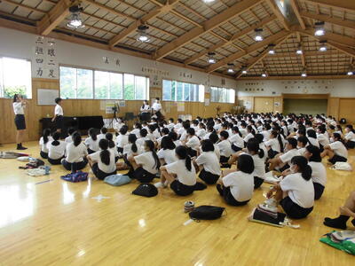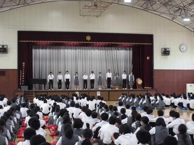 1年生の学年朝会では、学級委員の自己紹介と学級目標について発表がありました。3年生では、体育祭実行委員からこの体育祭で学年や学級が成長したところについて発表があり、引き続き応援団長からも振り返りとこれからの学年への思いが語られました。