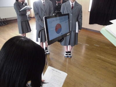 体験をまとめてクラスの仲間に発表しています。クロームブックを使って発表会を行いました。