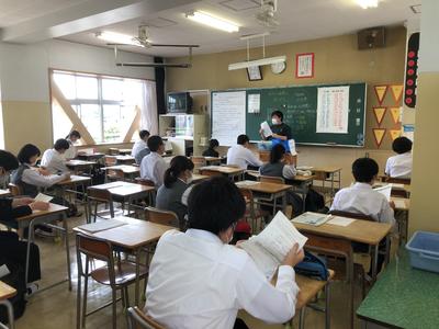 25日と26日は登校日。今週は各学年あと1回ずつ登校日を実施します。各学年とも「分割登校」でクラスの半分ずつの生徒が登校しました。教科の課題テストを行ったり、学活で今後の予定を確認したり。「新しい生活様式」を確認しながら、当分教育活動を進めていくことになりますが、感染防止に努め、日々の積み重ねをしていきましょう。