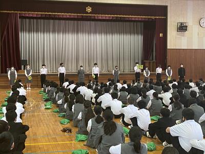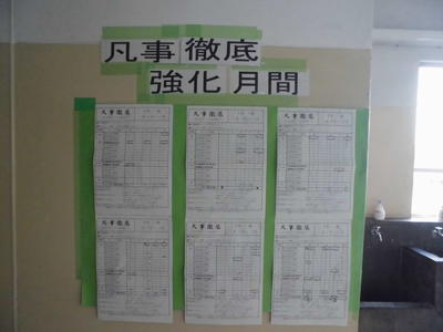 生活面では、7月2日まで「凡事徹底強化月間」として、日々活動しています。学級委員を中心に、各委員会や生徒一人一人が意識して、声かけなどを行っています。少しずつ意識が広がり、改善がみられてきています。