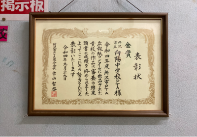 賞状は、PTA会議室前に掲示してあります。