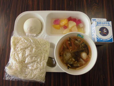 〈中華麺、広東麺、肉まん、フルーツポンチ、牛乳〉