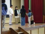 <雪だるまのすまし汁、わかめご飯、鯵味噌揚げ玉フライ、人参のごまマヨ和え、牛乳>