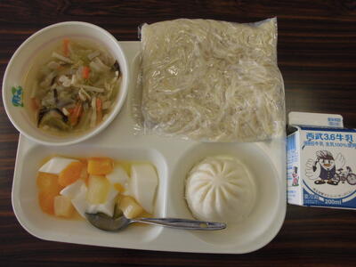 〈タンメン、肉まん、フルーツポンチ、牛乳〉