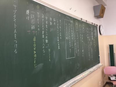 月曜の学活では、クラスでスローガンを決め、ちょうどいま、学年スローガンを決めている途中です。