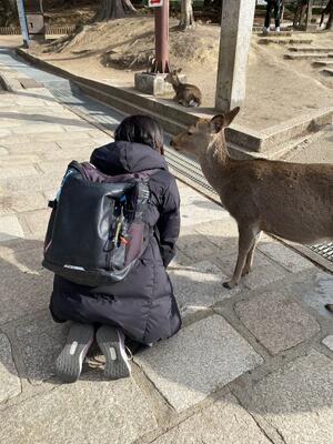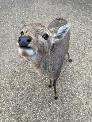 みなさん、「神の使い」シカさんと戯れていました🦌