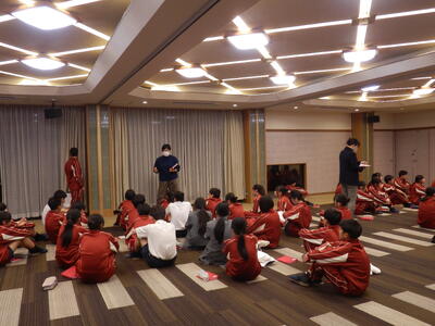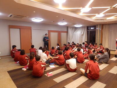 食事後は・・・ 投稿: kouyou-p (20:15) 昨日と同様セクション会議です。 昨日の反省から、今日の活動、そして新たな課題へとつなげながら話ができているセクション 座禅で学んだことを早速活かしながら聞く姿勢がさらに良くなっているセクション等 今日までの学びを活かした取り組み素晴らしい! この後は、お風呂と学活!今日の学びを振り返って最高の最終日へつなげましょう! Tweet -