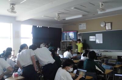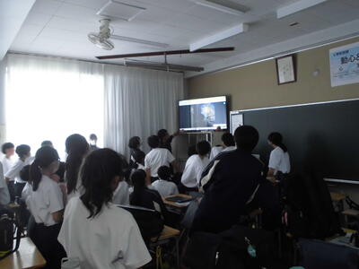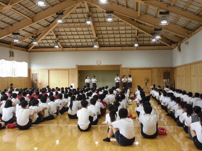 校長先生のお話と、各学年の代表生徒の話、校歌を、オンラインで行いました。