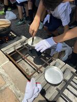 津原キャンプ場の方の話をよく聞いて、美味しく思い出に残るようなカレーを作りましょう。
